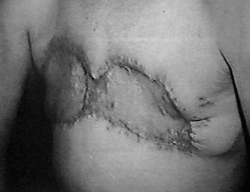 Know what that is? That's a great set of tits. C'mon, don't act so shocked. This is a fucking bar. This is a photograph of the chest of a victim of breast implants. Where these scars now are. The dying victims were forced to settle out of court when it became clear that Dow Corning, the manufacturer of the implants, would be able to drag the court case out for longer than the victims expected to live. Dow Corning is a subsidiary of Dow. Which has just merged with Union Carbide. Have you seen this?