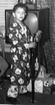 Lower my head through the opening peek downstairs. Kitchen a pool of shadows shimmer and flicker with changing scenes on the television screen. Door to the big walk-in closet open and blackness of closet's interior seeps out. Long, porcelain sink supported by four shiny metal legs. Curtain over glass panes of bathroom door billows in light breezes. |