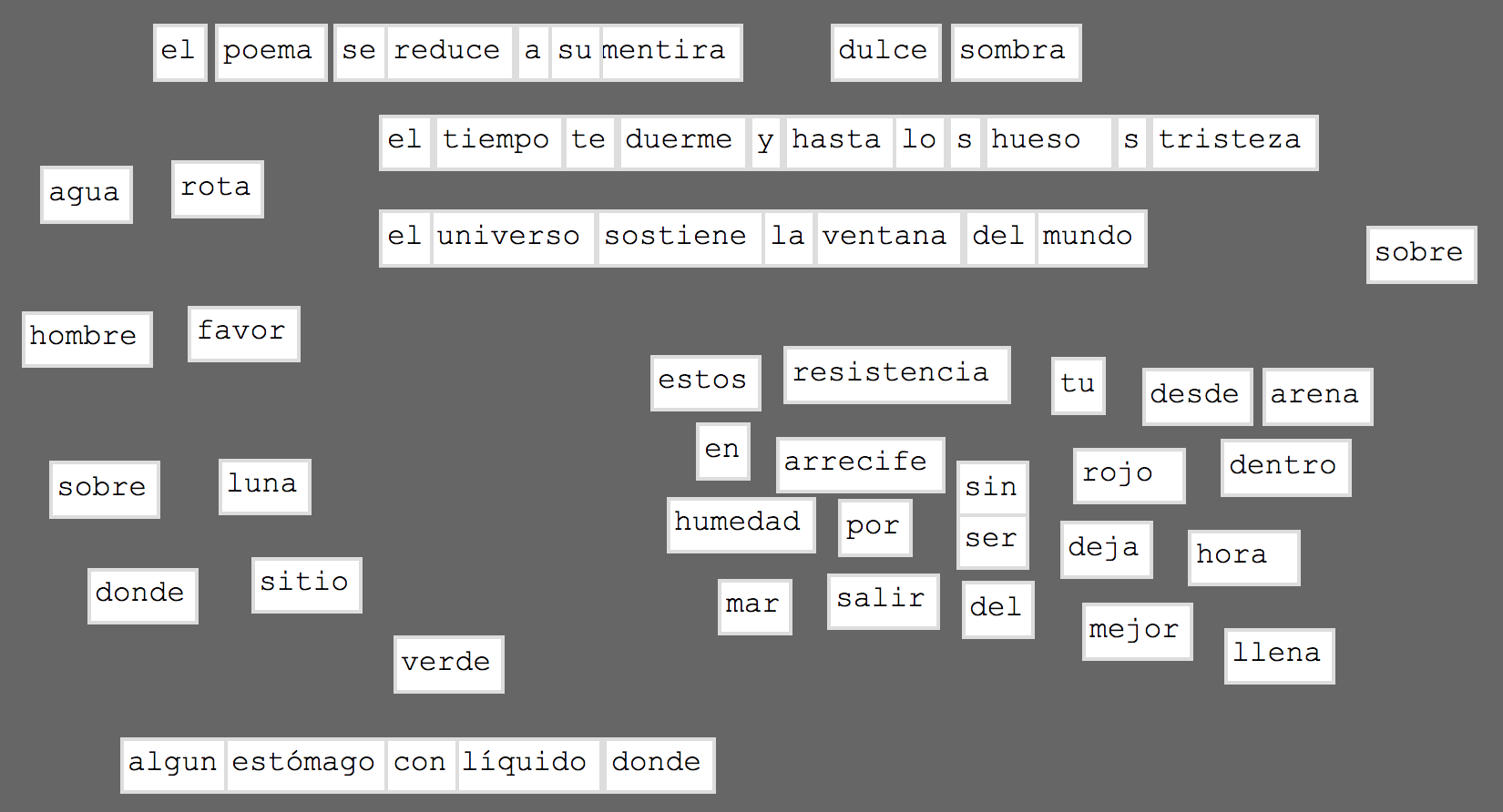 Estas son las palabras estadÃsticamente más frecuentes en mis poemas, espero puedan crear algunos nuevos poemas y compartirlos.