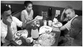 first, i know time. time. time. that's everyone's excuse, but i have another one. the food. i think that people only want to endure one bad meal per trip. when your on the road like this you are subject to the denny's, mcdonalds, burger king of this world. the amount of grease flowing through my body is enough to start a jiffy lube franchise. maybe i shouldn't be writing this because the other teams will know they have an advantage. o well. i just know now that the human body can only endure a few greasy spoons before boycotting. i'm still glad i am not flying.