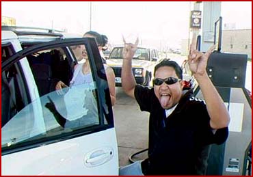 At the pump... Marc Pinate shows the secret Silicon Valley Poetry Slam handshake...