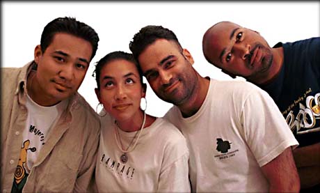 ![]() An international artistic revolution is reshaping the way people view poetry. In San José, CA, the Silicon Valley Poetry Slam Team, Marc David Pinate, Melinda Corazón Foley, Robert Karimi, and Castadera Antoine McGee, have astounded crowds with their verbal dexterity and perfomance skill. Team members have individually performed across the nation and have now come together to form a humble poetic powerhouse. Each represent very diverse backgrounds and creative styles that remind audiences of the complexity, beauty, and strength that is borne of daily struggle. Poetry Slam is a competitive event where poets perform one original piece within a 3-minute time limit and without the use of props or music. The poets are scored, Olympic-style, by five judges who are randomly chosen from the audience at the beginning of the bout. Between November '98 and May '99, a series of preliminary slams where held at Cafe Babylon and, later, at Waves Smokehouse and Saloon in Downtown San José. The three highest scoring poets from each of these monthly slams were asked to return and compete in the Final Slam which was held on June 8th at the San José Stage Company. The top four poets from that evening, now comprise the SVPS Team v2.0. Melinda, Robert, Cas, and Marc are on their way to Chicago to meet with poets from across the nation at the 10th Annual National Poetry Slam Championship. After the National Competition, the team heads to the East Coast to spread the word about San José's vibrant and expanding poetry scene. With the guidance, rhyme, and reason of Coach Vadim Litvak and through the keen eyes of photographer David Huang, the San José Team is primed to make their mark on highways, stages, coffeehouses, and communities across the nation. |