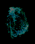 MARTHA GRAHAM wears her signature long flowing dress. The camera cannot see her feet. Like the SIX DANCERS, MARTHA GRAHAM's arms are extended out from her sides. (MARTHA GRAHAM looks at HELEN KELLER.) HELEN KELLER is able to discover, with her hands, the line of body and limb But HELEN KELLER's hands reach upwards. While the others look to turn, HELEN KELLER looks up. Her right hand dissapears into light.