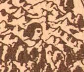 Coyolxauhqui's head remained at the edge of Coatepetl. On the great stone at the base of the Teocalli, her head is shown severed from her body. Here, and in other sculptures that show her head alone, she wears small gold bells on her cheeks, and balls of eagle down on her hair. |