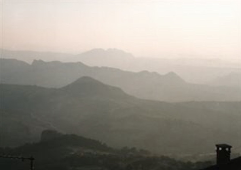 The view from the San Marino hotel was an enchanted kingdom. The first night there we opened the windows wide to the world. Then for four days the air turned thick with heat and mist and the hills were erased. In the white room there were two brass beds, the tubing no thicker than soft pretzels and filigreed in Beardsley lines. We pulled the beds together and touched each other lazily, listening to the sounds of Polish tourists on the narrow mountain streets four stories below. One Italian cable channel carried non-stop porn, ads for phone sex lines (even in Firenze this was so, Duomo of milkwhite breasts). In one video two gay men swam like dolphins in streams of lacy foam, lazy arcs of buttocks and languid arms, tonguing white thighs in a jet of aquamarine spume. On the last day we arrived at the maestro’s summer home, a low stone villa daubed in the same mustard and taupe hues of the surrounding paesaggio. Despite its old world solidity the villa seemed somehow reminiscent of southwest adobe or Sonora ranches. His study was the detached chapel, a single stone room up a steep flight of stone stairs under the inverted V of a simple roof, an ancient rough hewn lintel disclosing itself through the paste of stucco above the doors. Inside there was an incised Etruscan column in one corner, and next to it an IBM PC– its amber screen etched with a demure c> prompt. A polished darkwood recorder lay across an open Bach score on a music stand; a black bookshelf sized CD and tape player occupied one end of a large country table, centuries old, which served as a simple desk. In the garden below a woman in a short gauze peach colored dress moved languidly through the crowd, long tanned legs and pretty sandals, lacy bikini panties perfectly visible through the diaphanous skirt. She had arrived on the arm of a bronze tanned, golden haired heart surgeon, himself something of a media star. Signora Eco moved among the guests in the garden also, she too blond but slower and more beautiful than the ragazza, a Teutonic dignity, Hera’s hair, wise eyes, a ready laugh. She disappeared to help the cook put the feast out upon the ancient long table. Twilight settled. The first sounds of the music stirred in the village below. It was the communist festival. There would be wine and tarantella the maestro said. Perhaps everyone would drive down the mountain after dinner. As night fell he mounted the chapel steps and put a recording of Tangos on the CD player. Their melancholy filled the dark garden and filtered into the valleys below. The lion-maned French philosopher and hero of the revolution carried a full plate of food. Everyone spoke in half-whispers. The Americans sat in a row on the bench overlooking the fading light. “When does the curtain come up?” the maestro chuckled, “Ah you Americans, you think everything is the cinema!” His tone did not suggest disapproval. Swallows moved through the lapsing light in the valleys. It was time to go. When we sought her out to bid goodbye, we found the Signora in the kitchen turning the crank of the ice cream maker. “Won't you stay for gelato?” she said in careful English. We drove all night back to Milano through stifling heat. The dark lots of the coffee-bars along the Autostrada were filled with gypsies, bandits, sleeping tourists, and hippies with guitars. It was the time of the change. The air smelled of petrol, fried food and hashish. I would go back there if time allowed.