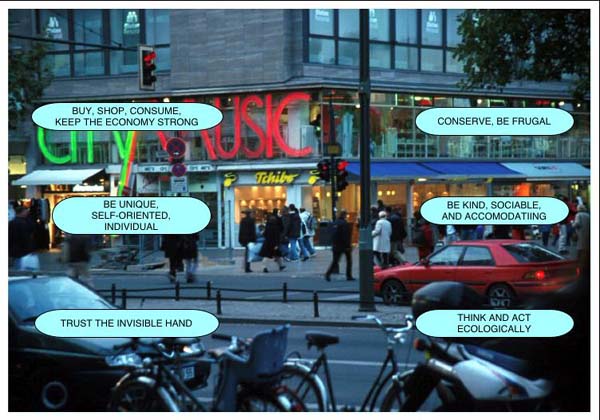 Here are questions about the larger forces influencing a place: Does the place have explicit links to or signs of its insertion into larger contexts and processes? Does the place enforce the illusion that its social and spatial structures are immediately given and natural? Or do its norms and spatial articulation and architecture make it easier to become aware of the political and economic processes, the systemic pressures and constraints, the varied interest groups within and outside the place, and their procedures of negotiation or imposition? Are there possibilities for intervening in or redirecting those larger processes?
