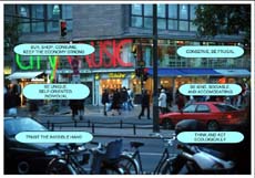 Here are some questions about processes of interpretation: Does the place encourage inhabitants to be aware of their own processes of active interpretation and their resolution of multiple roles and demands? Are there opportunities to participate in reformation or reproduction of the place's spatial structures and social norms?