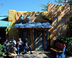 Tourists sitting outside a cafe at Disney's Animal Kingdom park