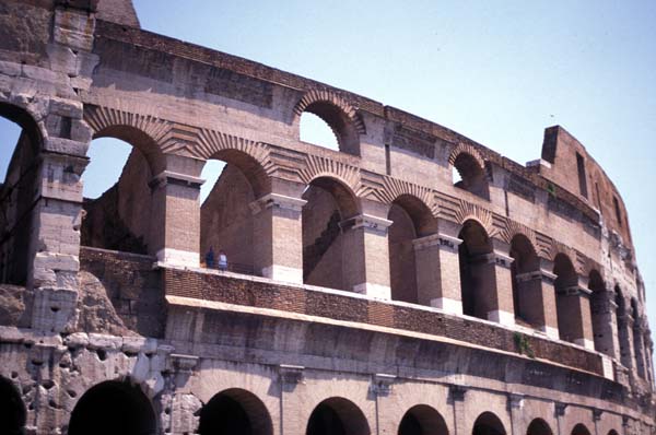 The Colosseum in Rome, with a restored section