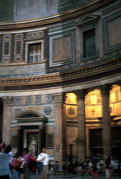 The grammar of a place is not the same as the program or the style of buildings in that place. Sometimes the grammar of the place can be more enduring than a building. Imagine a legislative body that rebuilds its meeting place in a new style but does not change its norms of operation or the way it divides its assembly room among the parties. More often the building endures while the place grammar changes. The Pantheon in Rome has had different place identities, as a temple, a church, a museum, and a tourist attraction. However, social grammar is not in total control. The Pantheon's authoritative design obviously has had tremendous influence on whatever grammars it acquired. Architectural and spatial effects can occur quite independently of place grammar. The Pantheon brings to bear on its current identity powerful spatial and geometric experiences with cosmological and historical associations that transcend any current norms for what goes on in the place. Buildings are not neutral containers for place grammars, and their architectural effects may or may not be consonant with the grammar of the place. Sometimes the social grammar will ignore or go against the architecture of the place, as may happen when a new institution is founded in an older building, for instance a democratic assembly in a former royal palace.