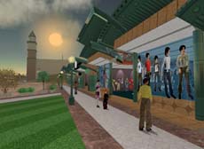 Shopping at stores in the virtual world Second Life (Image copyright 2003, Linden Research, Inc. All Rights Reserved.)
