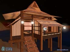 Japanese house in the virtual world Second Life (Image copyright 2003, Linden Research, Inc. All Rights Reserved.)