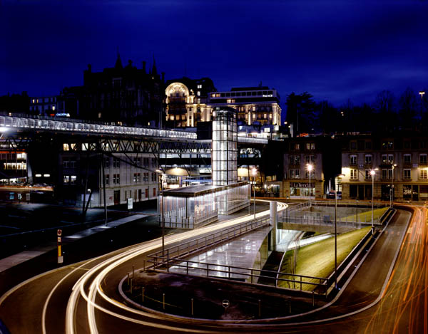 Traffic in Lausanne -- Photo by Peter Mauss/ESTO, courtesy of Bernard Tschumi Architects.
