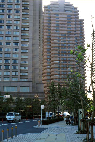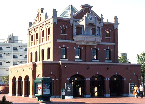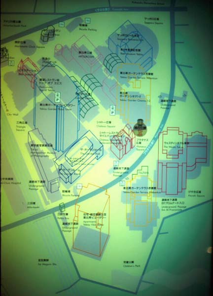 Walking down the hill from fashionable Daikanayama, coming into a crowded mid-range shopping street, under the railroad tracks, past the station, you arrive at Ebisu Garden Place. After tightly built streets, suddenly you find a suburban space in central Tokyo. The area had long housed the Ebisu brewery that made a beer named after the local area, itself named after a tribe of aborigines. The little brewery was bought out by Sapporo, a larger beer company named after the city in the far north where the Ebisu and other aborigines had been driven as the Japanese advanced up the islands. In the purchase, Sapporo acquired what was for Tokyo an immense parcel of land. Now it has been developed, in a manner familiar to Americans, as a multiuse agglomeration. The old brewery is commemorated since its bricks and European form are echoed in a folly version of the old building. The Ebisu Station Beer Garden is still there, but gone upscale. There are tall apartment towers, a Westin hotel, two sleek office buildings, a shopping mall on several levels both outside and in, many trees along the street and in the wide plaza -- itself an extravagance on what was at the time the most expensive real estate in the world, where buildings are supposed to press against the limits of their tiny lots. There is also basement parking (10 yen a minute), a Shinto shrine, and, since this is Tokyo, a French Chateau.