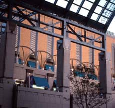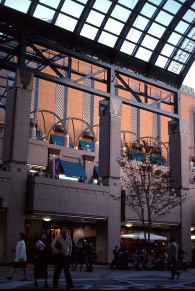 The basement mall at Ebisu Garden Place opens out into a huge glass-vaulted space open at both ends. Through the glass, on one side you see the walls of a tall modernist office building, on the other side a Mitsukoshi department store with a pomo dream of slimmed-down classical references. At one end you look out on the plaza. At the other, framed by the vaulting, stands the Chateau.
