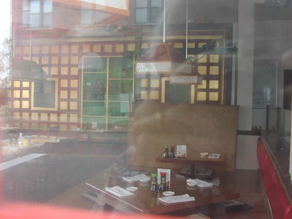 Returning from a trip, we decided to have a Japanese meal in Portland on our way home from the airport. There were two major Japanese restaurants in the city (as well as several minor ones). We drove to the newer restaurant, because we had preferred its generally upbeat atmosphere. First shock: the parking lot entrance was now spanned by a wooden gate arch in an oriental style. Second shock: the interior had been rearranged, the sushi bar enlarged, and an area of tables replaced by a long table in the shape of a boat. Third shock: the menu had been slimmed down to sushi and a few other items. Christmas music was playing, and there was a poster for Rock and Roll Sushi on Thursdays with live music. The TV was showing a tape of a sumo tournament. We didn't like the changes and went down the street to the older restaurant. It was darker, less well kept up, and, unlike the newer one, had Western waitstaff. The sushi chef there was jovial and loud, both in Japanese and English; the general air was loose and noisy. The menu was larger. The music was soupy orchestral arrangements of Japanese folk tunes, but there was some good calligraphy mounted on the wall by our table. The food was only so so, and the chef argued with some university students about whether they were of age to order beer.Both places were themed Japanese. But the newer restaurant had chosen to reshape that theme in a way that simplified it down to a series of univocal symbols. This made for a more intense and concentrated mouthful of otherness, but thinned out the complexities of the taste. This was very consumable, and the newer restaurant was getting more business. The older restaurant had mixed in Western elements without worrying too much about authenticity. Neither was quite like a restaurant in Japan, but the older one's informality and chatter among the staff was more like a neighborhood restaurant in Japan, and the "more Japanese" newer one seemed less like what one would find in Tokyo.