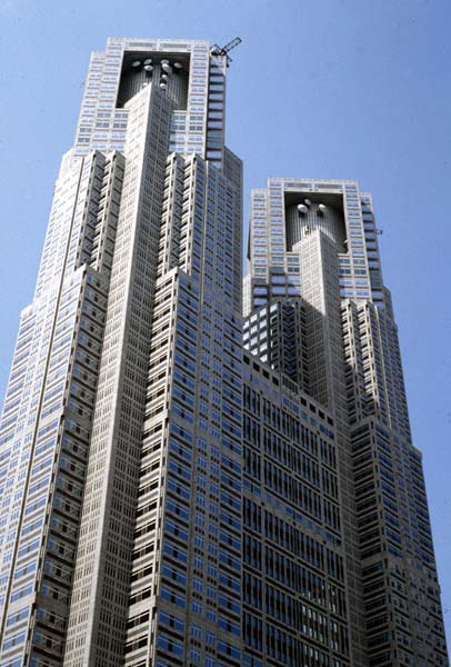 The most dramatic symbol of power in Tokyo is the lofty Tokyo Municipal Government city hall, which has chosen to clothe itself in Western images (it is Notre Dame, although in the place of the nave of the cathedral there is an enclosed plaza). Yet this city hall has less powerful than it seems, because the boroughs have much independence and the national government lords it over all from its low-slung buildings.