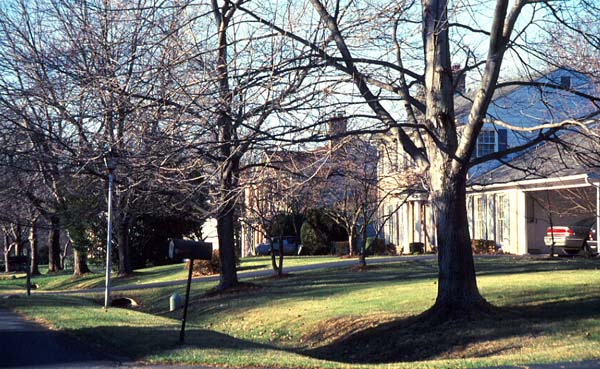 The next day the Virginia suburbs were similar, though there were more beauty strips of trees masking some of the developments. Nature was asserting itself, though, as was evident from the many insect control company trucks. I drove through the Edge City at Tyson's Corner in a congestion of traffic and buildings placed every which way unconcerned for one another. I spent time in the area around Reston and Herndon with small medium large extra-large shopping centers amid high tech industry near Dulles Airport. There I found the thirty-year old new town of Reston, and I visited the village center at Lake Anne.