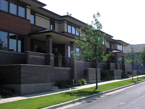 Frank Lloyd Wright style townhouses in Middleton Hills, a New Urbanist development in Wisconsin