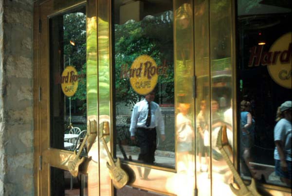 Someday , whether you are physically in Des Moines or Vladivostok you will be in the same place. Perhaps there will be an entry zone, the virtual equivalent of the Riverwalk (its precursor today is the passage through lists of links, then the front page, then the inner pages of a web site). You may experience a complex topography. There will be your familiar Des Moines, and then, inside the virtuality there will be an equally familiar zone, a virtual walk on the river of signs, where you will encounter the competing and varying frontages of the attractions vying to bring you into their private worlds. Seduction. Once you turn off the walk and enter, the chosen world will close around you. In that virtual world there may be a vast extent behind small street frontage. Borders will be experienced differently. Now, when you sit on the real Riverwalk terrace at La Mansion, or even when you eat inside the restaurant, you are assaulted by the music of the Hard Rock Cafe. The worlds blend into one another. Seduction becomes interference. On the virtual riverwalk there may be competition outside, but inside each world the space will be seamless, uninterrupted. The place will still be finite, but not because there are borders you can see or step over. It will be qualitatively finite; there will always be an other, but that other will not be encounterable without backing out and breaking the circuit. This possibility of change will be experienced as the presence of the absence of the other. Or as the exhaustibility of the little world. Or perhaps through viral invaders sent by the competition. It has been said that we can tell dreams from the real world because dreams are not so coherent. In a virtual reality zone ruled by one corporation, those marks may switch. Interruption and limits could become the mark of the physical world, coherence and continuity the marks of the virtual.
