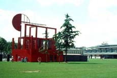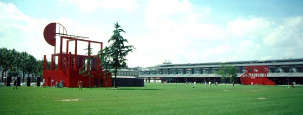 I had hoped to be more impressed with Parc La Villette. The exquisitely designed deconstructive red follies do punctuate the park as advertised, but they seem to be ignored or taken for granted as background by the users of the park, just as are the sculptures in the Luxembourg Garden. The follies do have functions, a video center, a building for les arts plastiques, and so on. The people I saw were using them just as buildings. The same seemed true for the elaborate cross-cutting and conflicting circulation patterns; the theoretical niceties and complexities do not seem to be there for the users. Whatever its theoretical armature, the park's grammar did not seem to be deconstructive for its users, but the variety of spaces and activities functioned very well. As far as I could see, traditional park functions dominated and were not exceeded, nor made to reflect on themselves, nor made to show their multiplicity or their internal limits. This goes against the rationale given in the proposal for the park, but in a different way it shows that the design works, since it does succeed well in its assigned program of bringing together a great diversity of functions and locations. But if in addition La Villette was supposed to put pressure on our notions of what a park should be or how it should be used, the people I saw using the park seemed to feel no such challenge. In the 1860s Parc Buttes Chaumont created a fantasy world of temples, caverns, and strange spaces separated from the normal world yet corresponding to its literary dreams. In the 1980s Parc La Villette tried to fragment the normal world with deconstructive gestures that make it self-conscious of its artificiality. But mundane reality wins; people bounce casual soccer balls off the invisibly deconstructive monuments. The best part for me was the wandering path through the bamboo: like some areas of Central Park, it was its own world, an effective walled space, a "traditional" element. I spent five hours in Le Notre's park at Vaux le Vicomte and could have spent much more, but La Villette did not make me want to linger too long. Was it my fault? Not knowing how to look or read it? Perhaps we don't know how to live a deconstructive park. Still, if the citizens don't use it deconstructively, what should the theoreticians do?