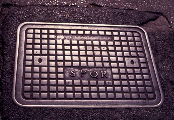 Roman manhole inscribed with the ancient SPQR