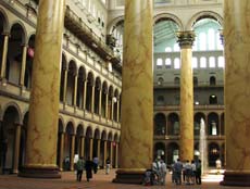 Coming through a small corridor into the main hall of the National Building Museum: structural surprise