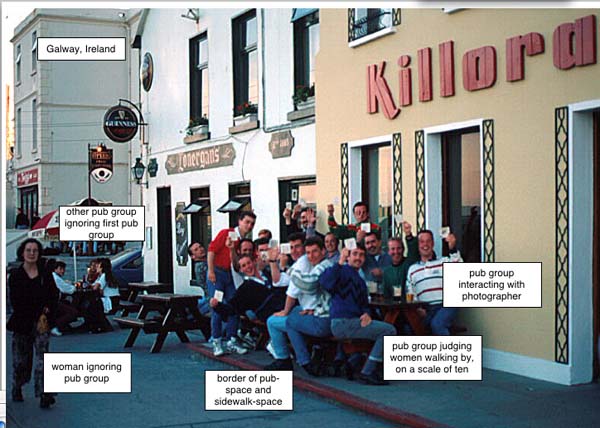Young men judging women as they pass by, in Galway, Ireland