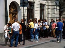 Waiting line at US Consulate in Krakow
