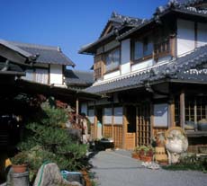 Potter's house in Shigaraki, Japan. Note the tanuki statue at the corner of the house