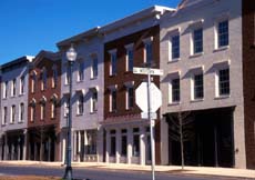 Near the mall at the corner of Kentlands, there is a street with live-work apartments above commercial space. On the shopping street where I had lunch, there was a hair salon, a CD store, a day spa, a wine store, a coffee shop, a tanning salon, and a store for games, and one for upscale vacuum cleaners. A lady in the cafe spoke across several tables to make a comment to the parents of a cute child, and she spoke cheerfully to me when I asked about what she was writing in her notebook.