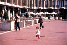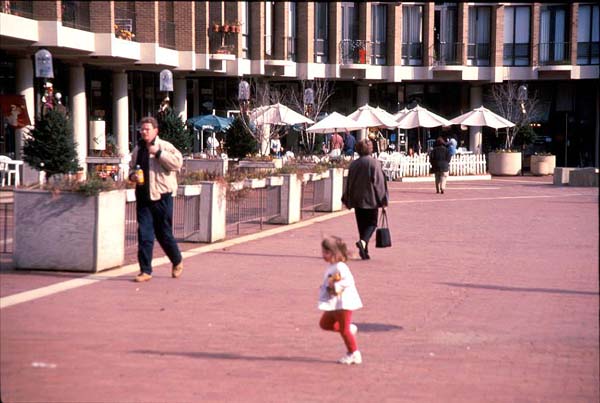 In its country look and abundance of trees, Reston felt far from the big city. The Lake Anne Village Center was very appealing, with its European touches, its apartments over the stores. The stores faced the plaza and the lake, rather than the parking lot, and the plaza was used by people happy to linger there. It was also good to see two Hispanic food stores in the village center, which seemed to verify what the lady at the Reston cultural center told me about a mixed population. The center showed how design could help place making: its built rhythm and punctuation helped stage activities by defining spaces and suggesting uses by deft historical references -- which were nonetheless executed in a modernist idiom. I could imagine walking there in the morning for a paper, as I saw people doing. Or sitting in a cafe or on a bench by the lake, getting to know people like the regulars at the cafe where I had lunch.
