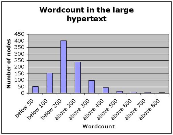 Graph showing the distribution of wordcounts for different pages of this hypertext