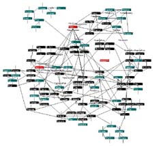 The Tinderbox map of the pyramid outline for a portion of this hypertext