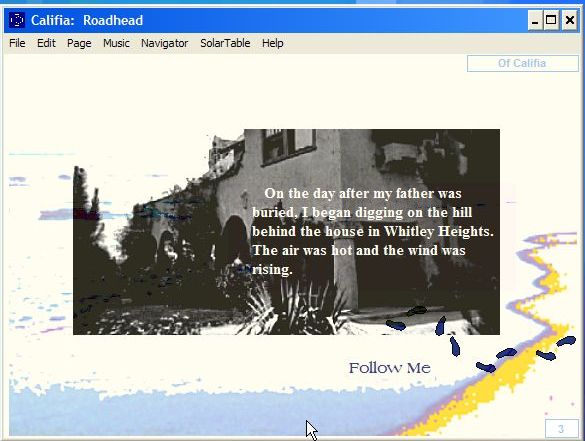 Each of the Narrators, Augusta, Kaye, and Calvin have their own paths through the various Journeys. In The Journey South, Comets in the Yard, Augusta introduces herself, tells her Backstory, and begins the chronolgy of the search for the Califia Gold.