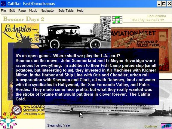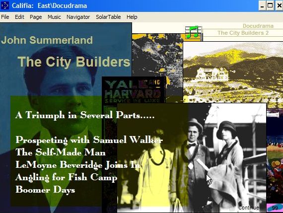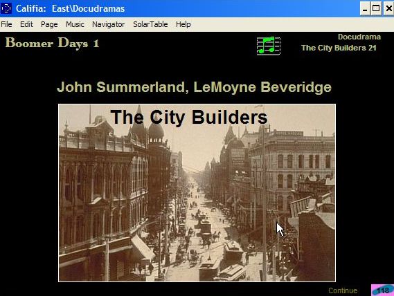 In the East, Calvin's Docudramas cover The City Builders - Samuel Walker, John Summerland, LeMoyne Beveridge, Fish Camp, Boomer Days, and The Pearls. More about Calvin in the South at his introductory site. |