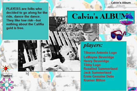 In the North, Calvin continues his Album, suggests some Clues, creates more Docudramas, and tells about the flight over the Tejon Ranch with Kaye from his Back Yard. More about Calvin in the South at his introductory site. |