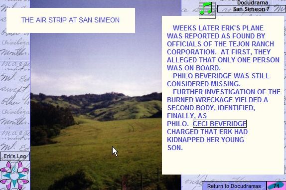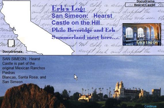 In the North, Calvin continues his Album, suggests some Clues, creates more Docudramas, and tells about the flight over the Tejon Ranch with Kaye from his Back Yard. More about Calvin in the South at his introductory site. |