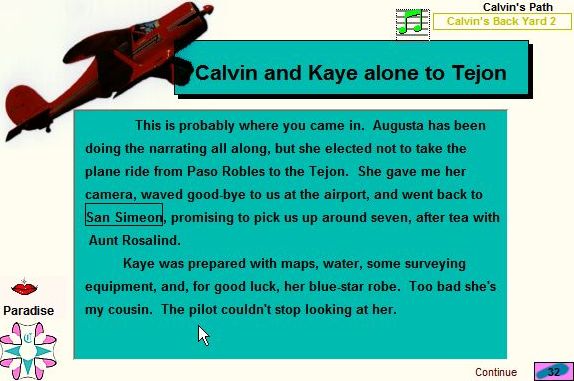 In the North, Calvin continues his Album, suggests some Clues, creates more Docudramas, and tells about the flight over the Tejon Ranch with Kaye from his Back Yard. More about Calvin in the South at his introductory site. |