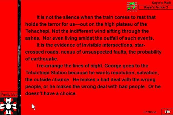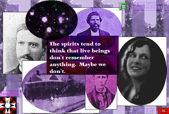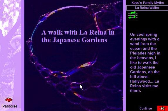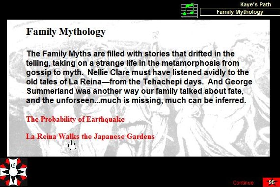 In the North, Kaye's path continues with Geological Certainties, Legends, Family Myths, and Star Lore. More about Kaye in the South at her introductory site. |