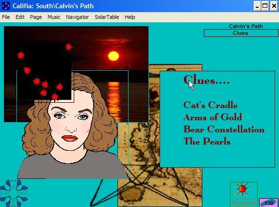 In the Journey South, Calvin's Random Access Clues give us glimpses of the Califia Gold possibilities. More about Calvin in the South at his introductory site. |
