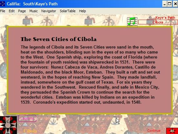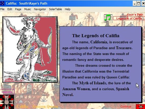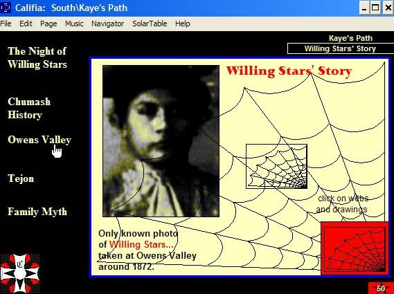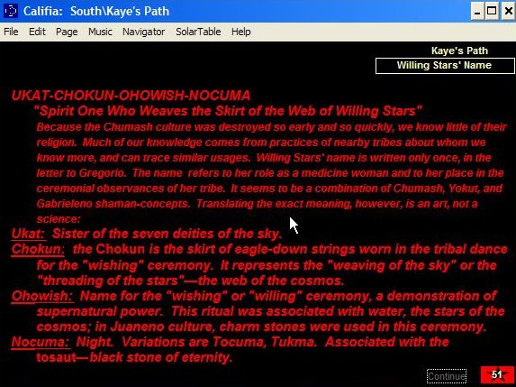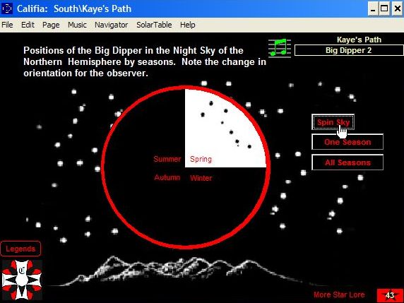 In the Journey South, some screens from Kaye's path - Generations, Legends, Family Myths, and Star Lore. More about Kaye at her introductory site. |