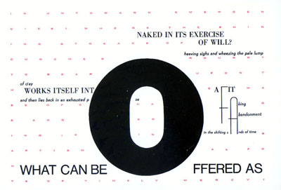 A Review of Figuring the Word by Johanna Drucker, Granary Books, 1998 by Ramez Qureshi Even in our post-Un Coup de Des, post-Futurist, post-Dada, post-Lettrist, post-Concrete, post-Derridean, cyber-days, how often do we stop to notice how often the word actually appears on the page, appears, not being italicized accidentally, this case of graphemic visual self-consciousness a banal occurrence of what Johanna Drucker would call Figuring the Word, as the title of her recent collection of critical writing attests. But Drucker is not concerned with solely the banal, though she is attentive to it: she is, rather, attentive to the potentialities of the rhetorical manipulation of the material manifestation of the sign as art, and her work and criticism probes such possibilities unflaggingly, providing perspectives on the possibilities of an avant-garde project for the moment, the "now" always being the location in history the avant-garde aspires to live in. ![]() "Writing is a visual medium," declares Drucker in "The Art of the Written Image," and understanding the plasticity of writing is the key to her work. There are certain artists who belong entirely to their age, and Drucker is such an artist. Clearly, her work arises from a Derridean climate, with the valorization of writing as a practice over speech and voice-based language art. She matured artistically in San Francisco during the 1970's with the Language Poets, working on similar grounds to foreground the materiality of the text and question, in her case, ignore, the voice. After attending graduate school, Drucker added theoretical perspectives to her work of artist's books, which all along, from 1972's The Real Story of the God-Thing, a calligraphied work handbound in green cotton, to 1976's breakthrough Twenty-Six '76 Let Hers: Not A Matter of Permission, to the well known 1984 and 1989 masterworks Against Fiction and The Word Made Flesh have represented an exemplary artistic practice. ![]() Why did Drucker write in the first place? "I believed that writing would save me from being a woman." Born in 1952, her growth coincides with that of the Woman's movement, no accident, considering the importance of gender identity in her work and identity politics in her genre's postmodern status: the personal is a reflection of the historical. Drucker delineates an intimate portrait of a young female denied access to those rights to which males were allowed "coming to writing:" "I wrote in tiny notebooks, sheltering the text in the protective curve of my body." By the age of twelve, these notebooks had seen five full novels. It is the same love of writing that Cixous describes in "Coming to Writing:" "Writing: as if I had the urge to go on enjoying, to feel full, to push, to feel the force of my muscles, and my harmony..." The body is not unemphasized. "Writing is always with respect to gender" for Drucker; early in her grad school days she read Kristeva on erciture feminine, and writing for her became a self-conscious feminine one. Woman, as is well known, has been seen as the Other, the "second sex" as de Beauvoir put it, but rather than reject this notion, Drucker embraces it and works within it to subvert in order to form an avant-garde project based on gender identity: "the Otherness of woman's writing is already within language." "To deny this Other is to deny the fact that there is, has frequently if not always been, a place for women within language." The praxis of this is bold indeed. In essays such as "Other than Linear" and "Auto-Ecriture and the Polymorphous Text" Drucker shows the pragmatic effects of this otherness in her works: the breaking of linearity - the way words simply move in a line, substituted by all sorts of alternative arrangements in her work --, and polymorphousness, texts which visually take on "other" shapes. The writing becomes one of the Kristevan semiotic, pre-symbolic, "the resonant realm," in Drucker's words, "of all the rest of human meaning in sense sensation, signification." It promises Kristeva's final second stage of feminism in "Woman's Time", the universalism of the feminine in writing (indeed, Kristeva's paragon's of erciture feminine included Mallarme and Joyce), represented in the recent anthology Out of Everywhere. By moving to the Lacanian capital A, Drucker effects the semiotic through a genre based on gender identity that is avant-garde precisely because of gender. ![]() Perloff writes that the postmodern genre "sounds like a contradiction in terms." Surely one characteristic of postmodernism is the blurring of genres after modernist Greenbergian purism. Hubert's and Davidson's essays in Perloff's anthology Postmodern Genres indicate Drucker's book, an artist's book of materialist visual poetry, as a quintessential postmodern genre. Drucker is fond of quipping that the artist's book is the art form of our time: "In many ways it could be argued that the artist's book is the quintessential 20th century artform." It isolates the book, that commodity whose rise accompanied modernity, with auratic visual art. Drucker speaks of "the book: its materials, its imagery, its literary substance, and most importantly, its function as the manifestation of a vision which could not take another form and still function as a fully self-reflexive, self-conscious art." The labor by which it is produced is non-alienated and involved: