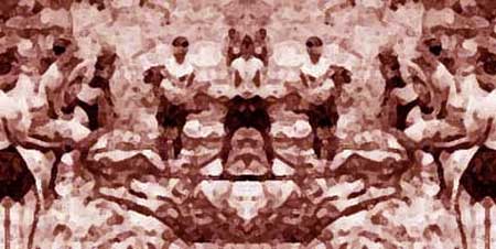 A tarde passo toda preparando "rostos". É que revelei as fotos da véspera pela manhã. Coloco as imagens no computador, misturo detalhes, faço a impressão sobre a tela preparada com acrílico ou sobre o papel argilado. Em seguida dou volume e endureço com cera de abelha e pigmento (encáustica). Ao secar a cera crio relevos com uma lâmina. Estética legitimamente teckné. O aspecto final é completamente inesperado e, quem não sabe, nem imagina que foi utilizado o computador.