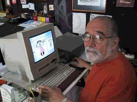 De repente algo completamente fora das minhas cogitações apareceu: o computador. A novidade entrou-me em casa pela mão de um filho. Interessei-me receoso. Aquilo era coisa muito misteriosa e não podia imaginar para que me serviria. Era convidado a mexer nele, mas meu respeito pela engenhoca era grande. Até que o Jayme comprou um melhor e me passou o velho. Um Mac. Daí em diante foi rápida a escalada. Troquei a máquina por outra melhor. Com algumas aulas e muita prática cheguei a um ponto médio de utilização. Ainda falta muito, mas colho soluções satisfatórias. Para desenho gosto muito do Clarisworks, um programa bem simples que vem com os Macs. Para trabalhar melhor as imagens passo para o Photoshop e às vezes para o Painter. São incríveis as possibilidades e resultados. E nada a ver com o trabalho tradicional com telas e pincel. E aí diferenciam-se dois usos do computador: