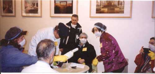 sterile gloves, dressed white tunics and covered their heads with nets.