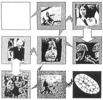 La "lectura" o versión de la obra tal cual la propone el Poema/Proceso que implica el desencadenamiento de versiones a través del consumo creativo, desacredita la esteticidad (sujeta al manejo ideológico de los comunicantes) e impone la funcionalidad comunicacional. Así, el creador único y omnipotente y su estilo personal desaparecen vía consumo masivo. El contraestilo se vuelca, no a la manipulación del conocimiento ya dado en un lugar y momento histórico determinado (la relación estructural de lo vigente y legitimado institucionalmente) sino la conquista de la información. Como ejemplo veamos 12 x 9 de Alvaro de Sá (1967):