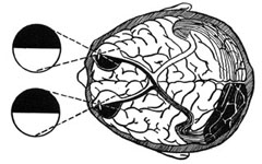 The processing of visual motion begins at the retina, where it is handled primarily by cells of the "magnocellular pathway." These cells send motion information to primary visual cortex via the lateral geniculate nucleus of the thalamus. Motion processing continues in cortex through several visual areas, ending up eventually in a region of temporal cortex called MT. Cells in MT respond to quite sophisticated aspects of motion, including motion in 3D and motion of animals. As is typical, the visual cortex of the left hemisphere of the brain processes information for the right visual field, and the right hemisphere processes the left visual field. A stroke to area MT in the left hemisphere can therefore impair the perception of motion in the right visual field, a condition known as hemi-akinetopsia. A patient suffering from hemi-akinetopsia has normal motion perception in one half, say the left half, of the visual field, but cannot see motion in the right half of the visual field. Instead, such a patient reports seeing the right half of the visual field as though it were viewed with a strobe light.
