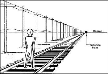 In the normal process of visual development, infants acquire the ability to perceive depth from motion at 3 months of age. At about the same age they acquire the ability to see depth from stereo vision for objects that are nearby, i.e., between them and their fixation point. They do not acquire the ability to see depth from pictorial cues until much later, at about 7 to 9 months of age. Pictorial cues to depth are the cues we use when interpreting photographs and images. Perspective is one such cue, as when one sees the sides of a railroad track converge toward each other as their distance from the observer increases. Another cue is occlusion, in which a nearer object covers up a portion of an object that is further away. The genetic program that governs this pattern of visual development is normally as reliable as it is powerful. But a single nucleotide mutation on chromosome 9 can profoundly alter the program, leading to a condition known as bathosmigia, in which the normal depth relations are inverted or, on occasion, simply scrambled. Near objects are seen as far, and far as near. An object that is occluded appears to be in front of the object that occludes it. The train tracks appears to get closer as the lines converge.