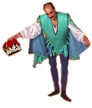 customs agent being bribed by a rotund happy merchant with a cask of FINE WINE!!!!